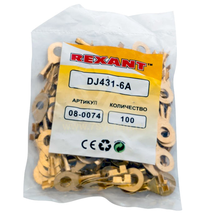 Наконечник изолированный кольцевой DJ431-6A Rexant, 100 шт/упак