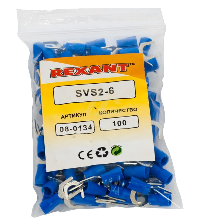 Наконечник изолированный вилочный VS2-6 Rexant, 100 шт/упак