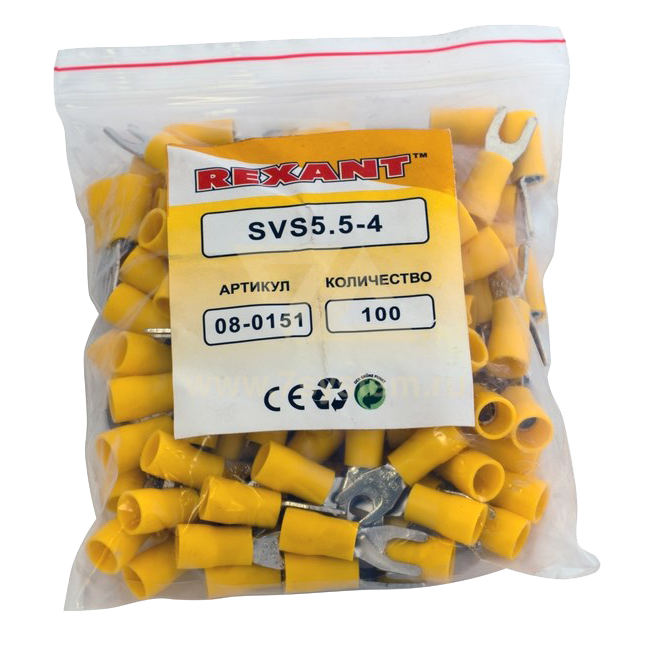 Наконечник изолированный вилочный VS5.5-4 Rexant, 100 шт/упак