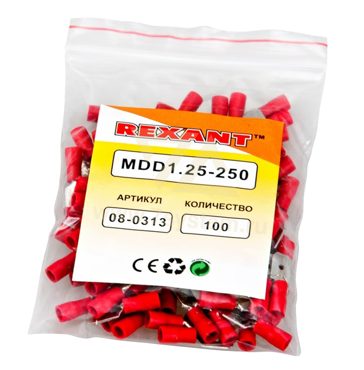 Клемма изолированная плоская (штекер) VM1.25-250 Rexant, 100 шт/упак