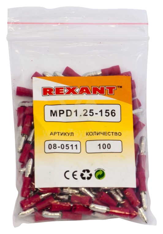 Разъем изолированный круглый (штекер) VM1.25-156 Rexant, 100 шт/упак