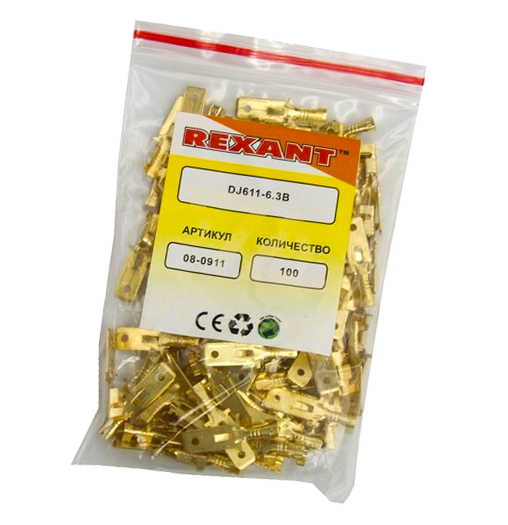 Клемма изолированная плоская (штекер) DJ611-6.3B Rexant, 100 шт/упак
