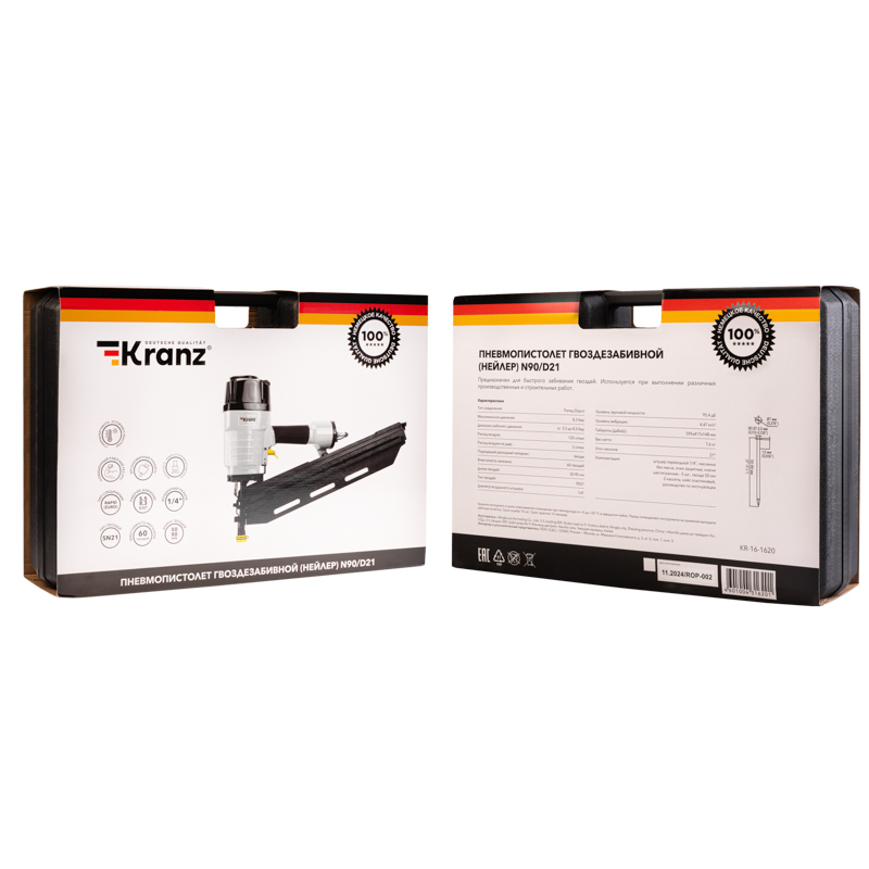 Версия для печатиПневмопистолет гвоздезабивной N90/D21 KRANZ, наклон 21 градус