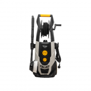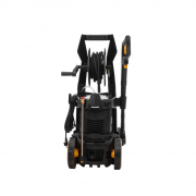 • На корпусе мойки располагается держатель пистолета и распылителя, а также встроенный крюк для крепления провода. Предусмотрены быстросъемные коннекторы фиксации шланга и насадок.