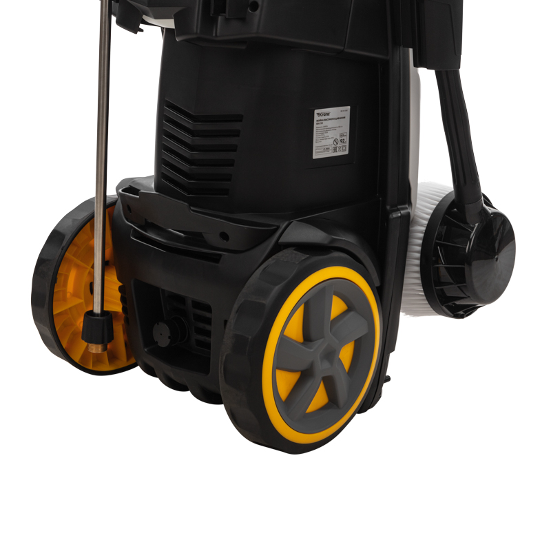 • Мойка отличается мобильностью благодаря кабелю длиной 5 м, удобной рукоятке и колесам. Усиленный армированный шланг длиной 8 м обеспечивает удобство использования.