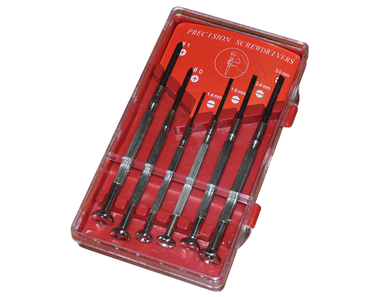 Набор часовых отверток (6 предметов) для выполнения высокоточных механических работ (монтаж электроаппаратуры, сборка и ремонт часов и т.п.).