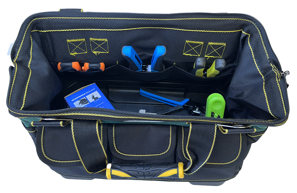 Сумка для удобной и безопасной транспортировки инструментов при выездных работах. Пластиковое дно надежно защищает от грязи и влаги.