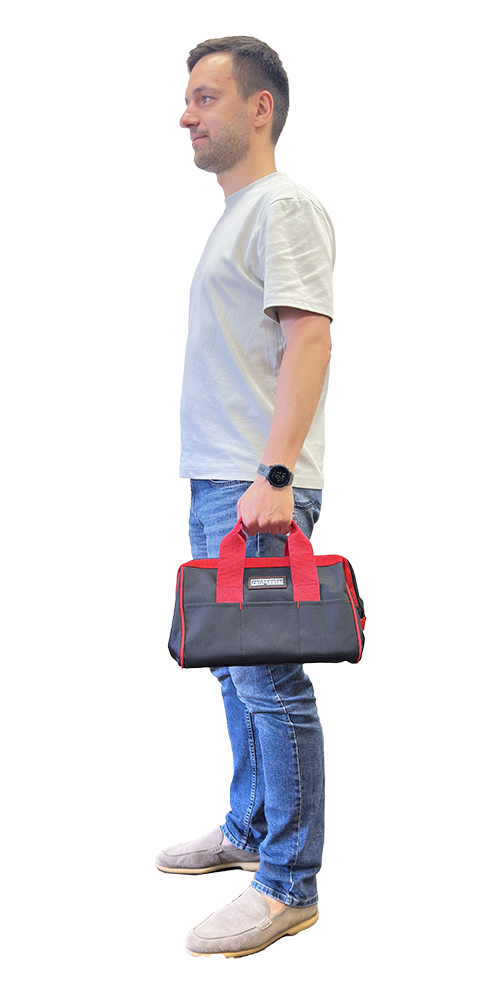 Компактная сумка для удобной и безопасной транспортировки инструментов при выездных работах.