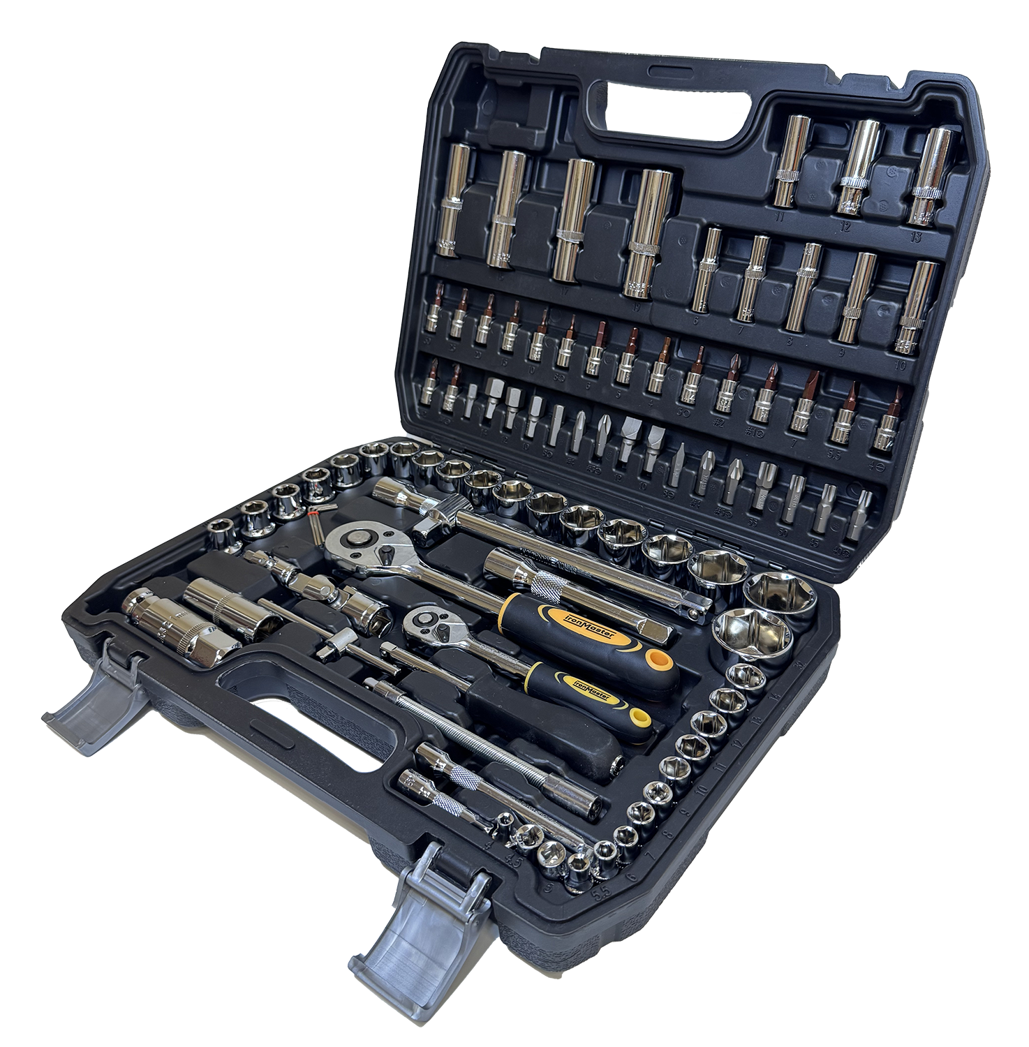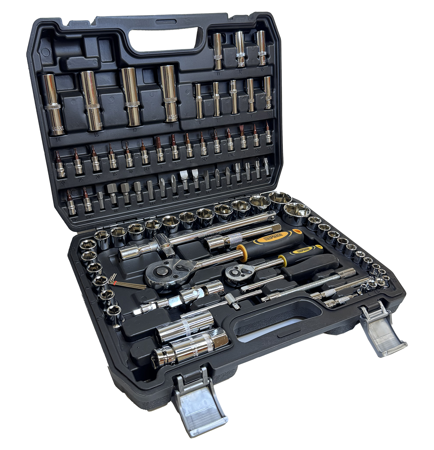 Наборы инструментов универсальные представлены в оптимальной комплектации и включают в себя самые необходимые инструменты и популярные типоразмеры головок и ключей. Универсальны и незаменимы для выполнения профессиональных и бытовых ремонтных работ. Рабочие части инструментов изготовлены из прочной стали и отличаются высокой стойкостью к износу.