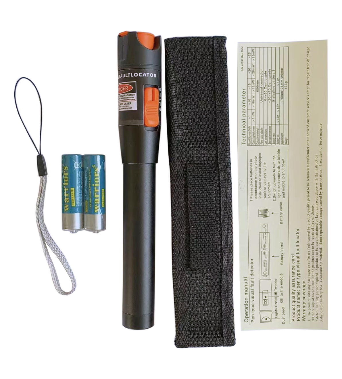 Детектор повреждений волокна VFL-15 Carrot предназначен для просветки оптических линий и контроля целостности оптических волокон. С его помощью можно визуально установить место повреждения оболочки волокна. Устройство излучает красный свет на длине волны 650 нм, видимый человеческим глазом.