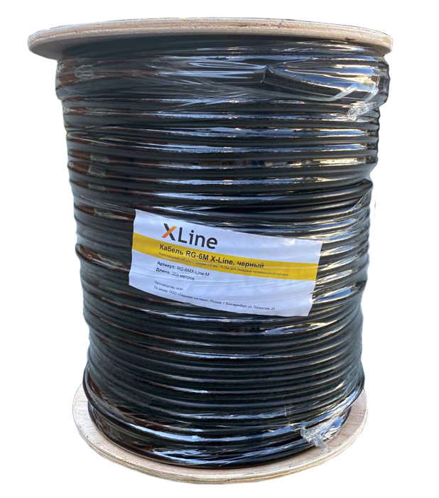 Кабель RG-6M X-Line, с тросом 1.2 мм, черный, 305 м