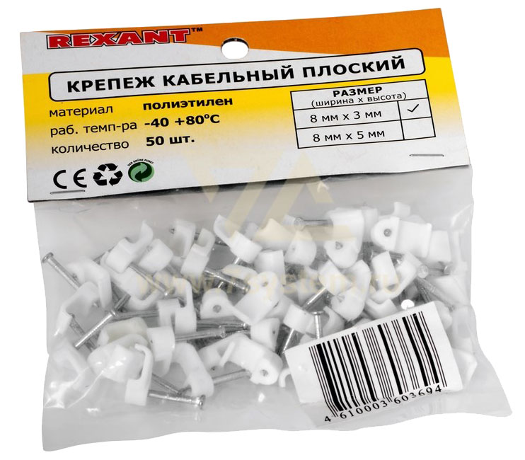 Крепеж кабеля плоский 8 мм x 3 мм Rexant, 50 шт