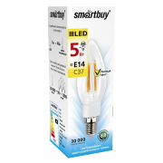 Лампа LED C37 Filament Smartbuy, Е14, 5 Вт / 40 Вт, 3000 К, тепло-белая