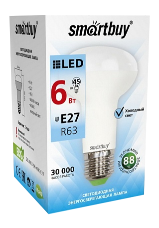 Лампа LED R63 Smartbuy, Е27, 6 Вт / 45 Вт, 4000 К, холодно-белая