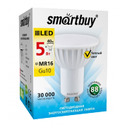 Лампа LED MR16 Smartbuy, Gu10, 5 Вт / 40 Вт, 3000 К, тепло-белая