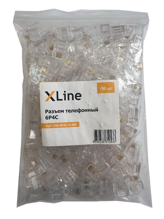Разъем телефонный 6P4C X-Line, 100 шт/упак