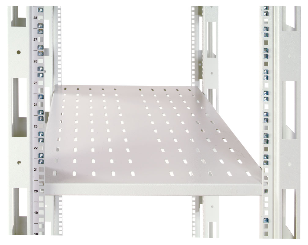 Полки серии СВ предназначены для размещения нестандартного оборудования. Имеют четыре точки фиксации к вертикальным направляющим шкафов и открытых стоек. Для свободного прохождения охлаждающего воздуха полки имеют развитую перфорацию. Серия СВ несет нагрузку до 45 кг.