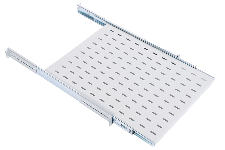 Полки имеют телескопические направляющие, обеспечивающие плавное выдвижение. Монтажные кронштейны фиксируют полку к вертикальным направляющим шкафов и стоек в четырех местах. Глубина монтажных кронштейнов регулируется, что позволяет устанавливать полку на необходимую глубину. Полка перфорирована для свободного прохождения охлаждающего воздуха.