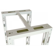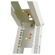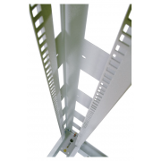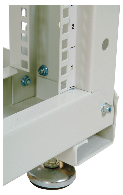Универсальные стойки 19" имеют полностью разборную двухрамную конструкцию, каркас повышенной жесткости скреплен болтами с внутренними шестигранниками. Вертикальные направляющие имеют юнитовую маркировку. Для удобства монтажа и коммутации оборудования предусмотрены развитая перфорация, широкий спектр аксессуаров и система заземления. Двухрамная универсальная стойка 19" имеет регулировку полезной глубины – 750/620/580/450. При организации крупных коммутационных узлов возможно крепление стоек между собой через вертикальный кабельный органайзер. Удобство установки обеспечивают массивные опорные кронштейны и регулируемые винтовые опоры (ножки), компенсирующие неровности пола.