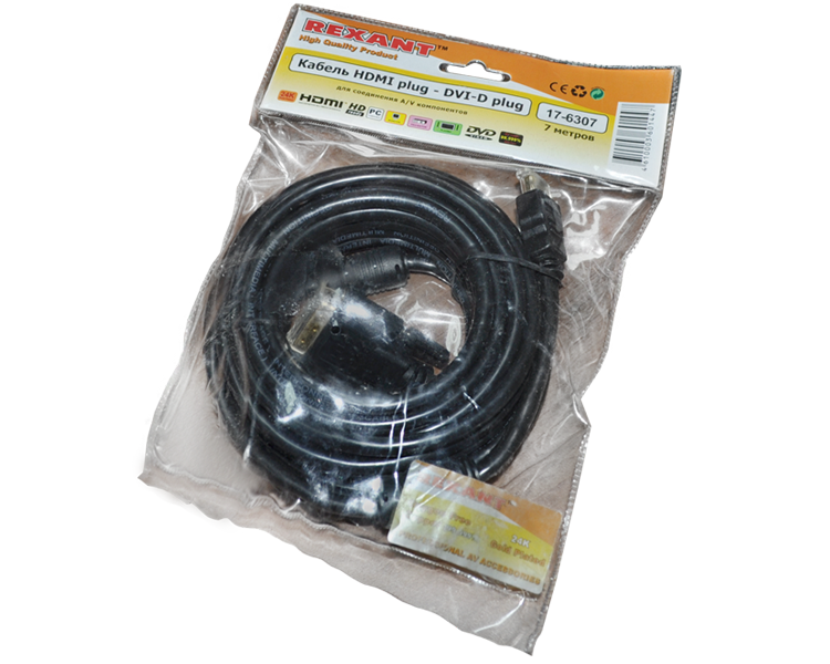 Версия для печатиШнур HDMI - DVI-D GOLD Rexant, с фильтром, 7 м