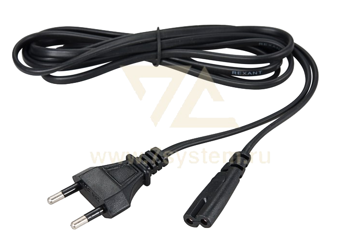 Шнур сетевой Rexant, 1.8 м предназначен для подключения к сети переменного тока (AC) с напряжением 220B аудио-, видеоаппаратуры, источников питания ноутбуков, игровых консолей и других приборов, имеющих штыревой сетевой разъем типа С8. Данный сетевой шнур (IEC cord) оснащен с одной стороны литой неразборной плоской вилкой (Евро), с другой литым гнездовым неполяризованным разъёмом типа C7 (евро-разъём) и двухжильным проводом с сечением жил 0.5мм².