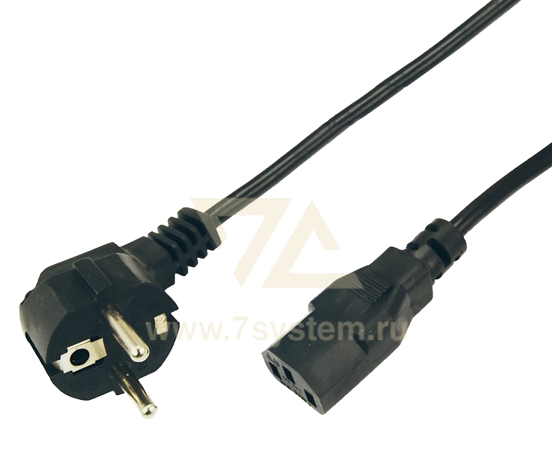 Шнур IEC оснащен с одной стороны неразборной литой вилкой (евростандарт) с заземляющим контактом, с другой литым трёх контактным гнездовым разъёмом C13 и трехжильным проводом с сечением жил 0.75 мм².Статус: Под заказ