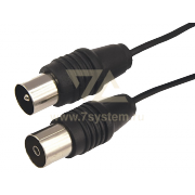 C одной стороны шнура располагается штекер TV-разъема, с другой - гнездо TV-разъема. Корпус разъемов выполнен из качественного, легкого и прочного пластика. Контакты никелированы и обеспечивают высокий уровень передачи сигнала к оборудованию. Цвет шнура – черный, а длина составляет 15 метров.