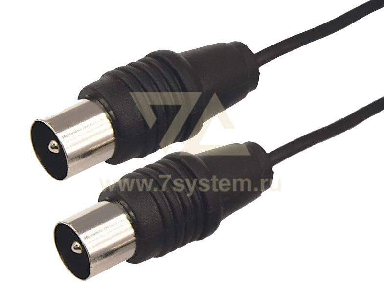 C обеих сторон шнура располагаются штекеры TV-разъема. Корпус разъемов выполнен из качественного, легкого и прочного пластика. Контакты никелированы и обеспечивают высокий уровень передачи сигнала к оборудованию. Цвет шнура – черный, а длина составляет 7 метров.