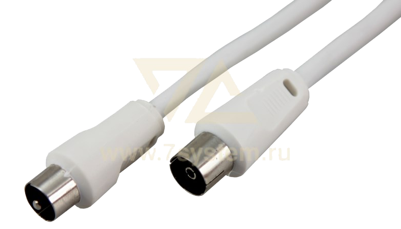 C одной стороны шнура располагается штекер TV-разъема, с другой гнездо TV-разъема. Корпус разъемов выполнен из качественного, легкого и прочного пластика. Контакты никелированы и обеспечивают высокий уровень передачи сигнала к оборудованию. Цвет шнура – белый, а длина составляет 5 метров.