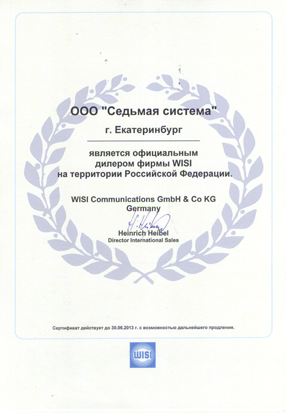 28 апреляВ апреле этого года наша компания получила статус официального дилера фирмы WISI (Германия) на территории Российской Федерации. Об этом свидетельствует наличие сертификата..jpg)
